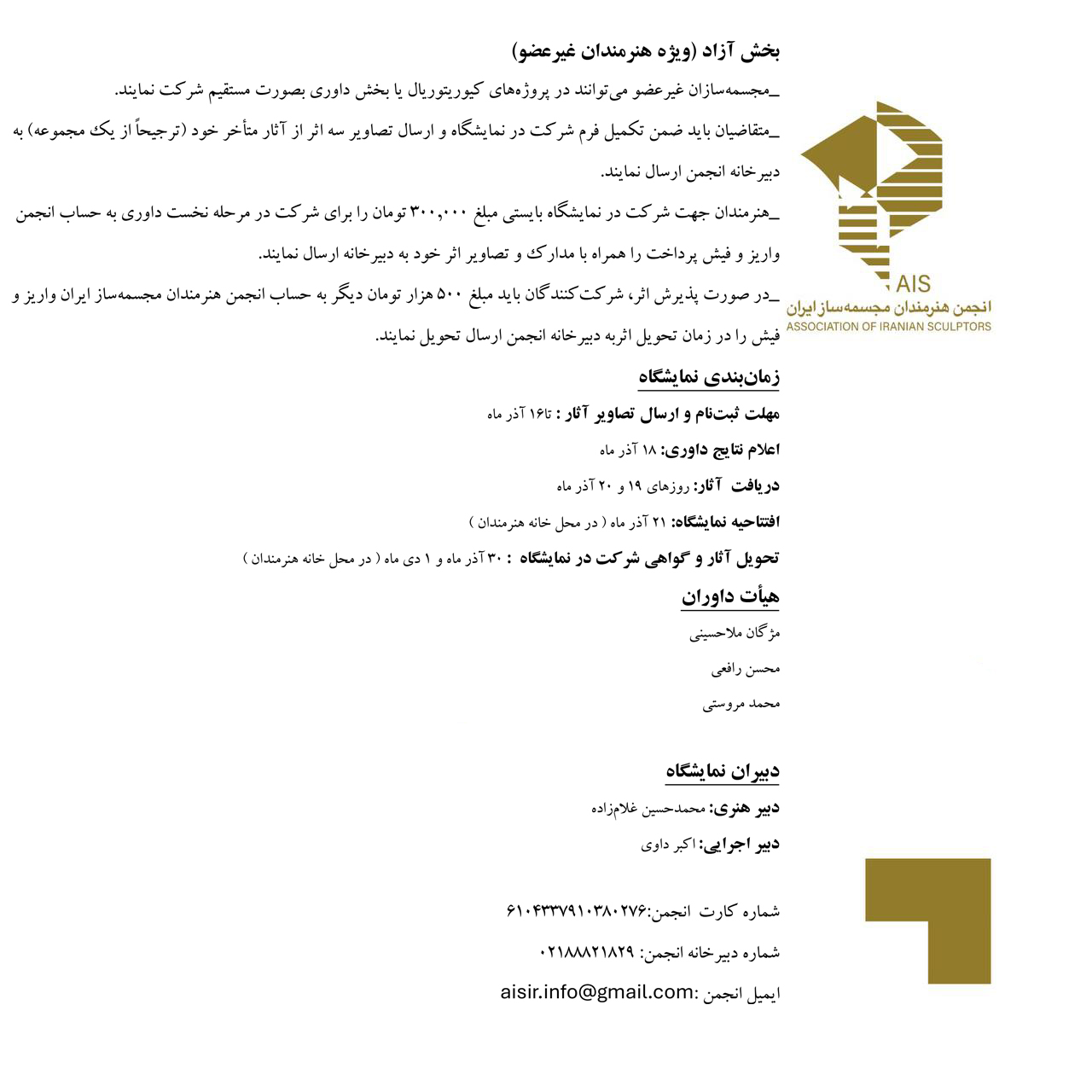 _مجسمهسازان غیرعضو میتوانند در پروژههای کیوریتوریال یا بخش داوری بصورت مستقیم شرکت نمایند.