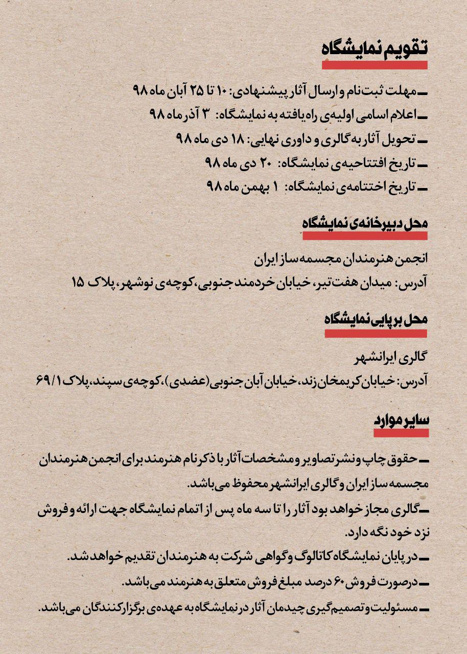-تحویل آثار به گالری و داوری نهایی: ۱۸ دی ماه ۹۸